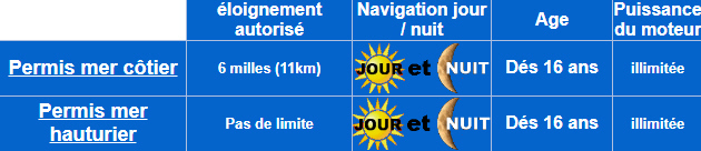 Le Permis A : il permettait de naviguer jusqu'à 5 milles de la côte de jour comme de nuit, sans aucune limitation relative à la puissance du bateau. Les personnes titulaires d'un tel titre disposent aujourd'hui d'un Permis Mer Côtier par équivalence.